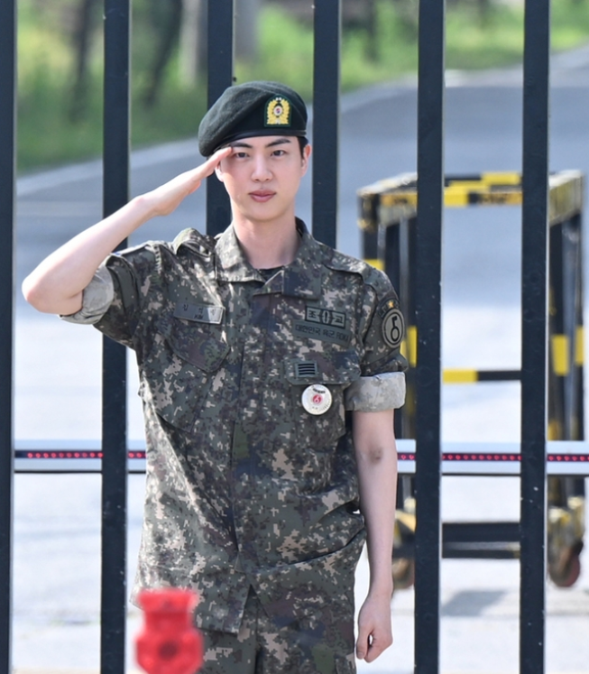 진은 6월 12일 오전 경기도 연천 육군 제5보병사단에서 전역했습니다. 진은 지난해 12월 13일 육군 현역으로 입대하여, 제5보병사단 신병교육대 조교로서 성실히 복무하며 두 차례 조기 진급하는 등 군 생활을 모범적으로 수행했습니다. 진의 전역식에는 많은 팬들이 몰릴 것을 예상하여 다수의 경찰과 경호 인력이 배치되었습니다.