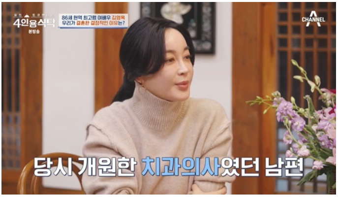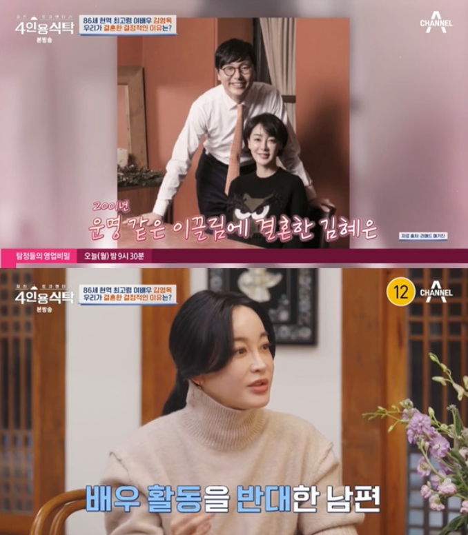 86세 현역 최고령 여배우 김영옥이 진행하는 채널A '절친 토큐멘터리 4인용식탁'에서는 최근에 김혜은, 우현, 박하나가 초대되었습니다. 이 자리에서 김혜은은 자신의 연기 시작과 남편과의 이야기를 고백했습니다.