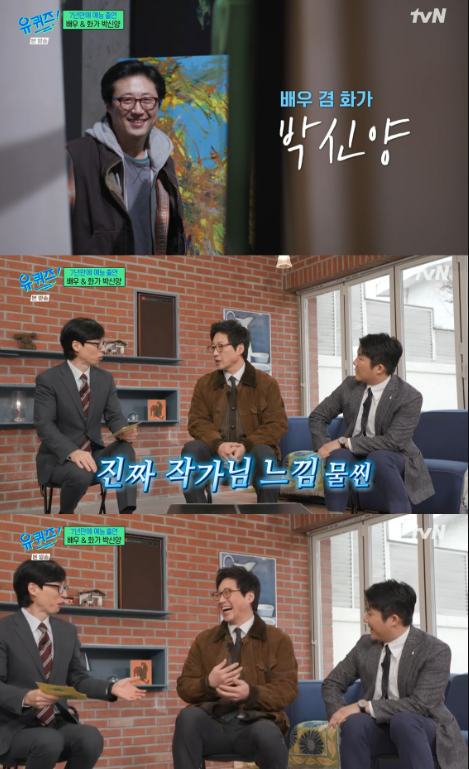 21일 tvN '유퀴즈 온 더 블록'에서 배우이자 화가로 활약 중인 박신양이 출연하였습니다. 이번 특집에는 박신양 외에도 대세 아나운서 강지영과 세계 0.1% 여성 일등항해사인 김승주도 함께 출연했습니다.