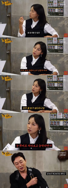 이효리는 "저희 옛날에 MC 같이 할 때 늘 설렁설렁하고"라며 탁재훈의 태도를 지적했습니다. 그리고 "두 분이 아주 꼴 보기 싫더라. 막 농락하고"라며 돌직구를 쏘아붙였습니다.